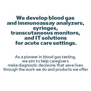 Integráljuk a vérgáz analizátorokat, fecskendőket, a helyszíni informatikát és a szolgáltatásokat. Küldetésünk, hogy egyszerűsítsük diagnosztikai munkafolyamatait, lehetővé téve, hogy a valóban fontos dolgokra összpontosíthasson - a kritikus állapotú betegek gondozására.