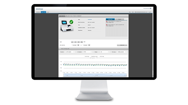A Quality Manager valós időben gyűjti össze a napi és havi minőség-ellenőrzési teljesítményt a hálózatba kötött Radiometer ABL analizátorokból. Ezeket az adatokat egy helyről ellenőrizheti, dolgozhatja fel és foglalhatja jelentésbe - és mindezt az íróasztal elhagyása nélkül.